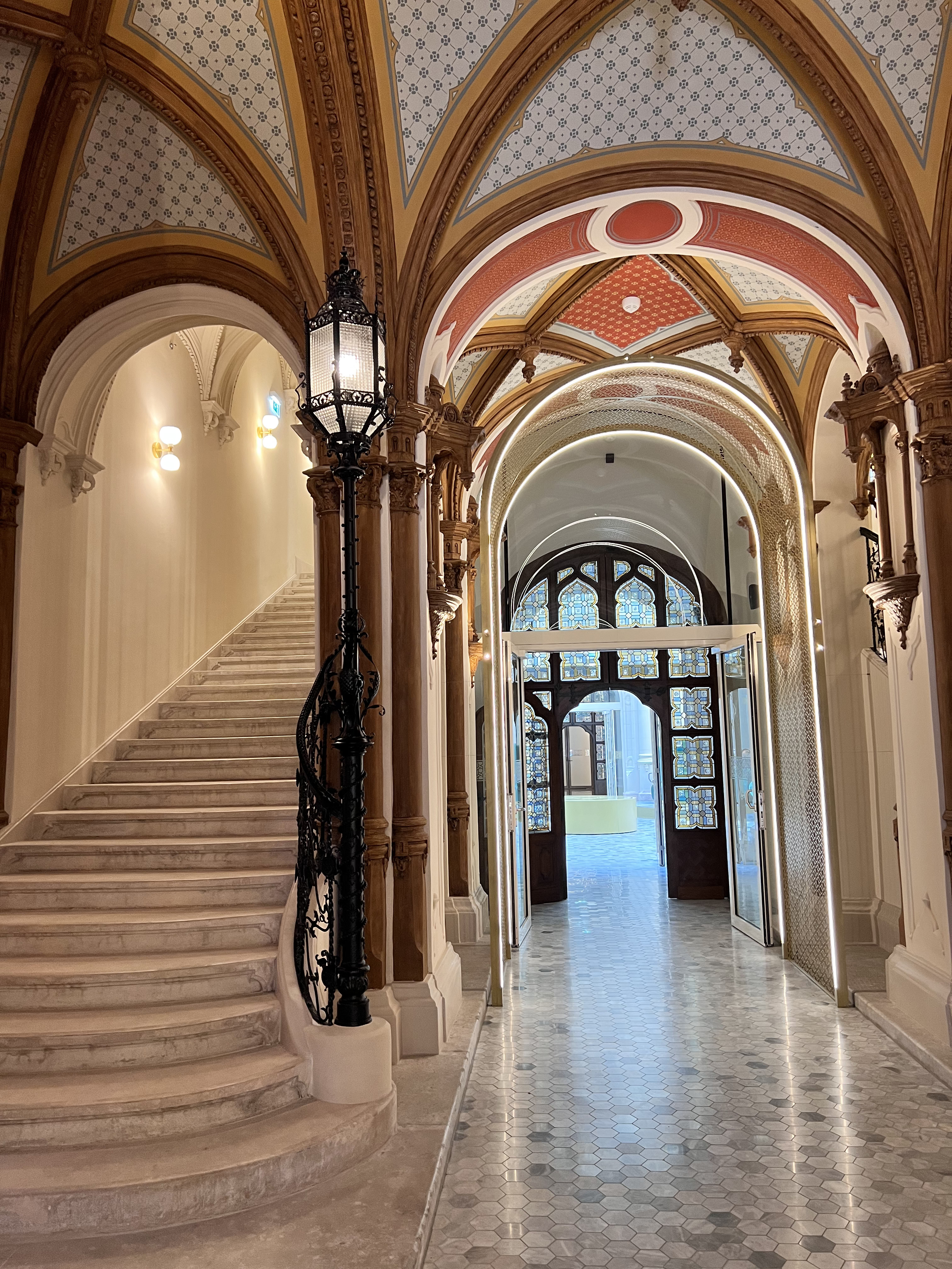 The extensively redesigned hotel in the Drechsler Palace building has been open for only a month. As we checked in, the lobby was filled with security personnel we later learned were for someone important from Qatar. Once we wound through the hotel up to our room, I also felt like royalty.