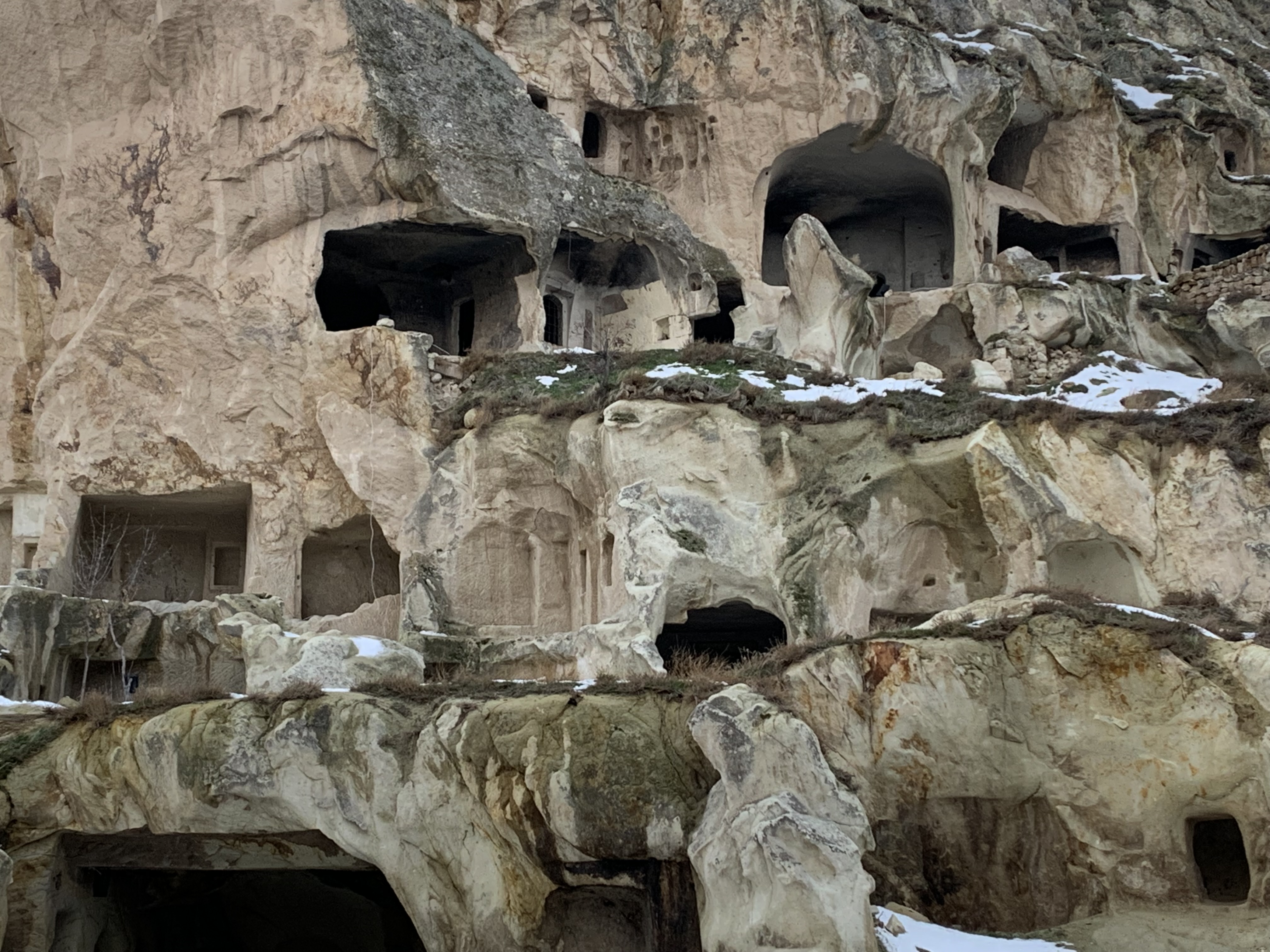 That’s me above, slugging up the hill in boots, coat, and the mandatory hat. We came to Cappadocia to get away for several days last winter. We were in between holidays and thus away from the crowds. There was snow and cold, but we bundled up and walked parts of the city.