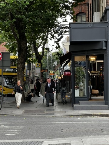 These are typical streets in Dublin's city center. Pedestrians don’t seem to jaywalk as Americans do in their cities. They wait until the light has changed and the walk sign appears. My daughter would not make it here. She’s a true New Yorker and jaywalks everywhere, daring the cars to hit her.