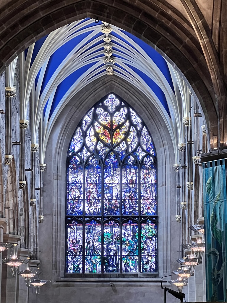 If you’ve never been to Edinburgh, the main downtown area with tourist attractions is easy to wander. We began at the Palace of Holyroodhouse and walked up the Royal Mile to Edinburgh Castle, stopping in shops after lunch in a small cafe, then visiting one of the cathedrals.
