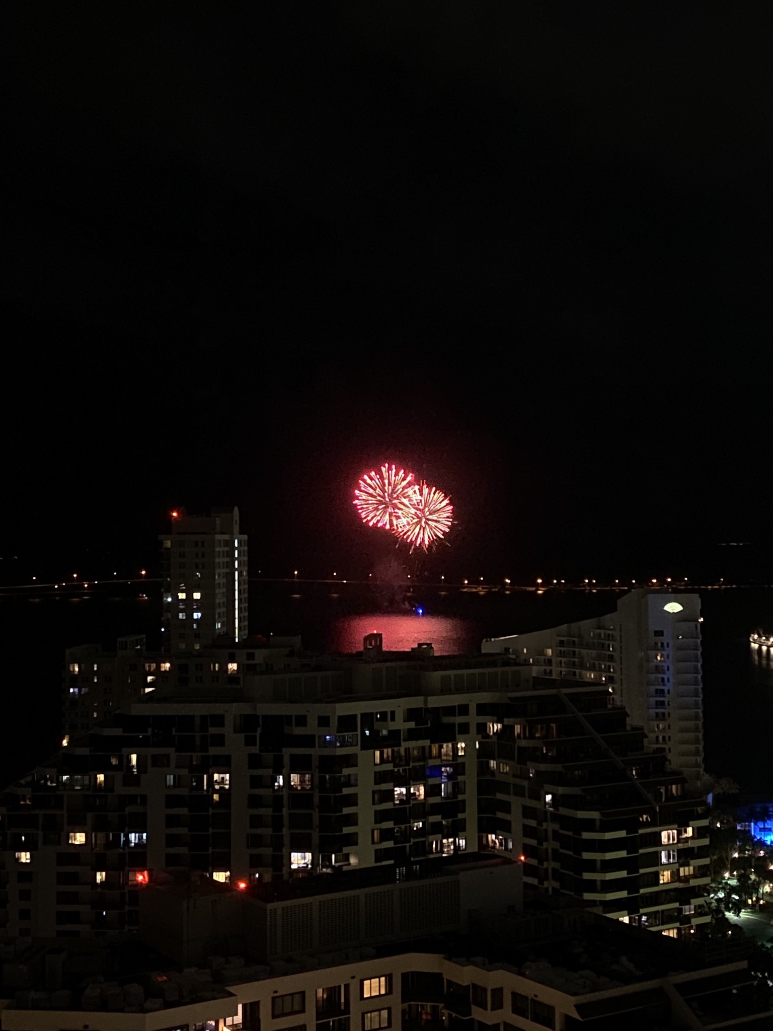 In our first year, I lost count of the fireworks displays. They became one more thing in the insanity of Miami, and I no longer watch them. The displays have become one more thing that requires noise-blocking headphones or earbuds in a cacophonous city.