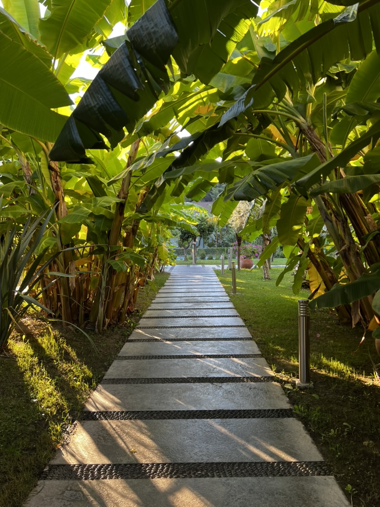 Backroads booked us into a very nice hotel, the D-Resort Göcek, which is more thoroughly reviewed by The Luxury Editor here. My only regret is that I did not plan enough extra time on my trip to enjoy the bicycles, spa, and pool. The banana grove below was my daily path to the restaurant and meeting place for our hikes or excursions. The staff was more than accommodating and the breakfast buffet was the largest I’ve seen in Türkiye.