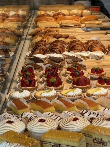 The pastry shops are similar to what I am used to in Türkiye, colorful with luscious variety.