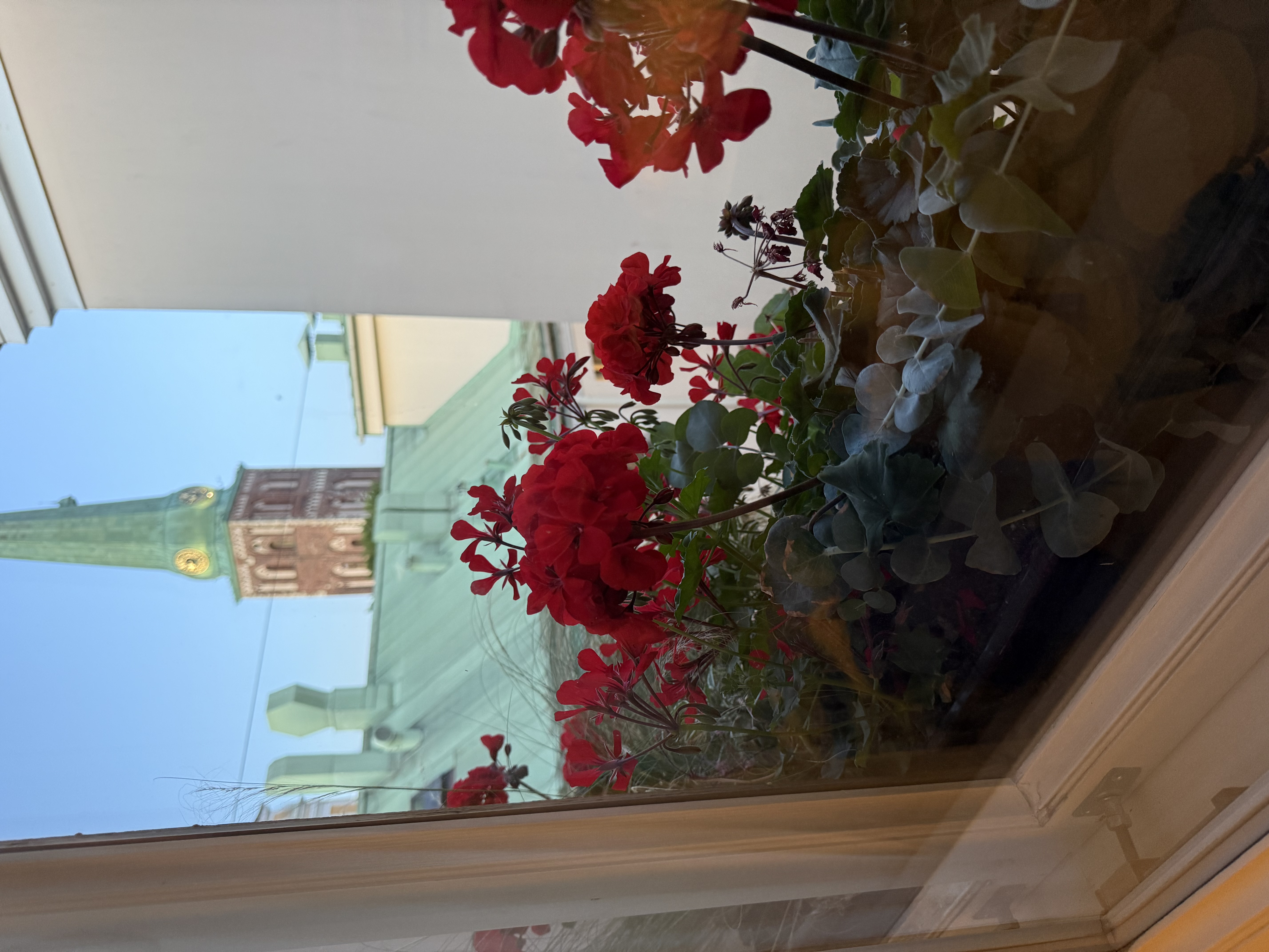 This is the view from our hotel in the old section of Riga, Latvia. Love the flower box.