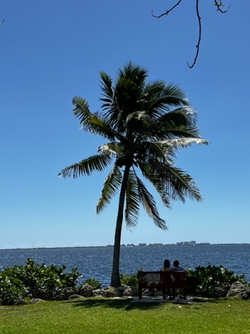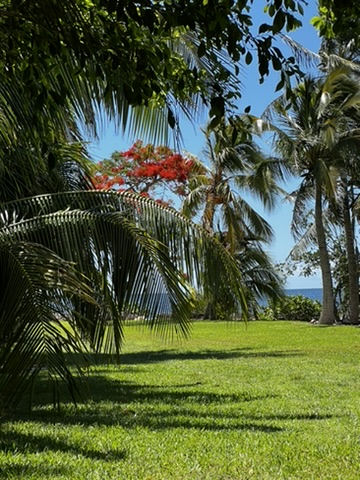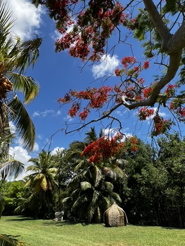 The poinciana trees are in bloom now, and several large ones are on the property. I didn’t realize how close we were to civilization until I stepped to the end of the Point and could see buildings very close in the distance.
