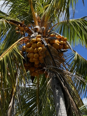 The Kampong provides a guidebook with details of the above items and photos so that you can identify them on the grounds. I was fascinated by the number of coconuts on the palms.