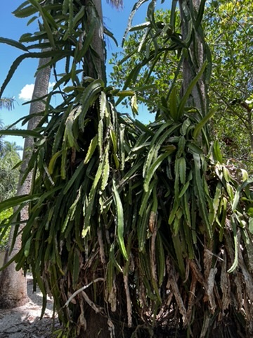 There was this cactus-looking plant crawling up a palm. Can you tell me what this is? I could not find it and forgot to ask before we left. Most plants are labeled, but I could not find the name of this one.
