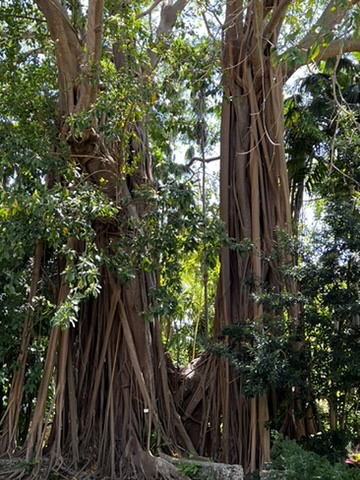 This large tree below is a ficus. I’ve had them as house plants, but I had no idea they could grow this large. Of course, in Miami, everything grows rapidly in the heat and humidity. I learned that the property originally was coral blasted to make it level and then compost and mulch was added to make soil over time.