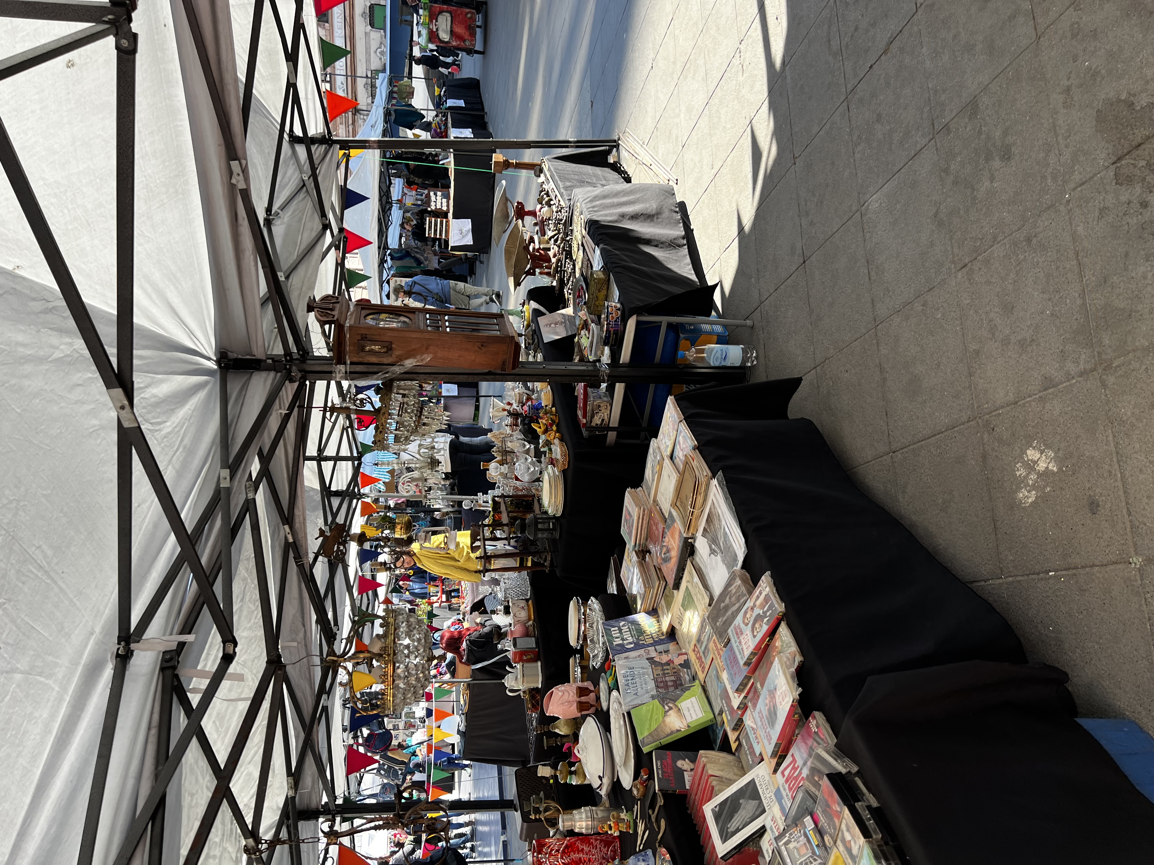 Then, after coffee and a breakfast panini, we wandered through the market, which consisted mostly of antiques and hand-made items, such as shawls, hats, ponchos, and other clothing.
