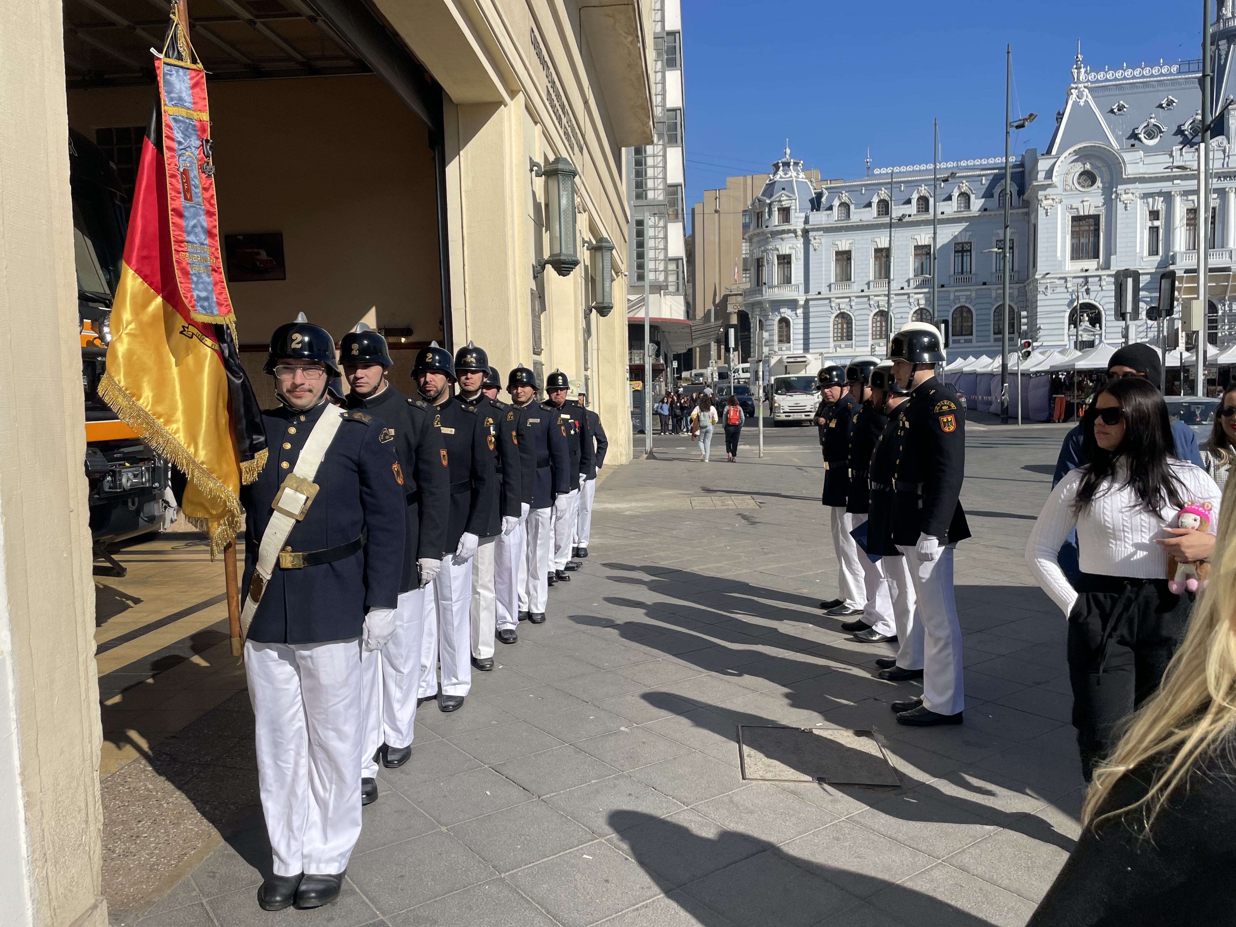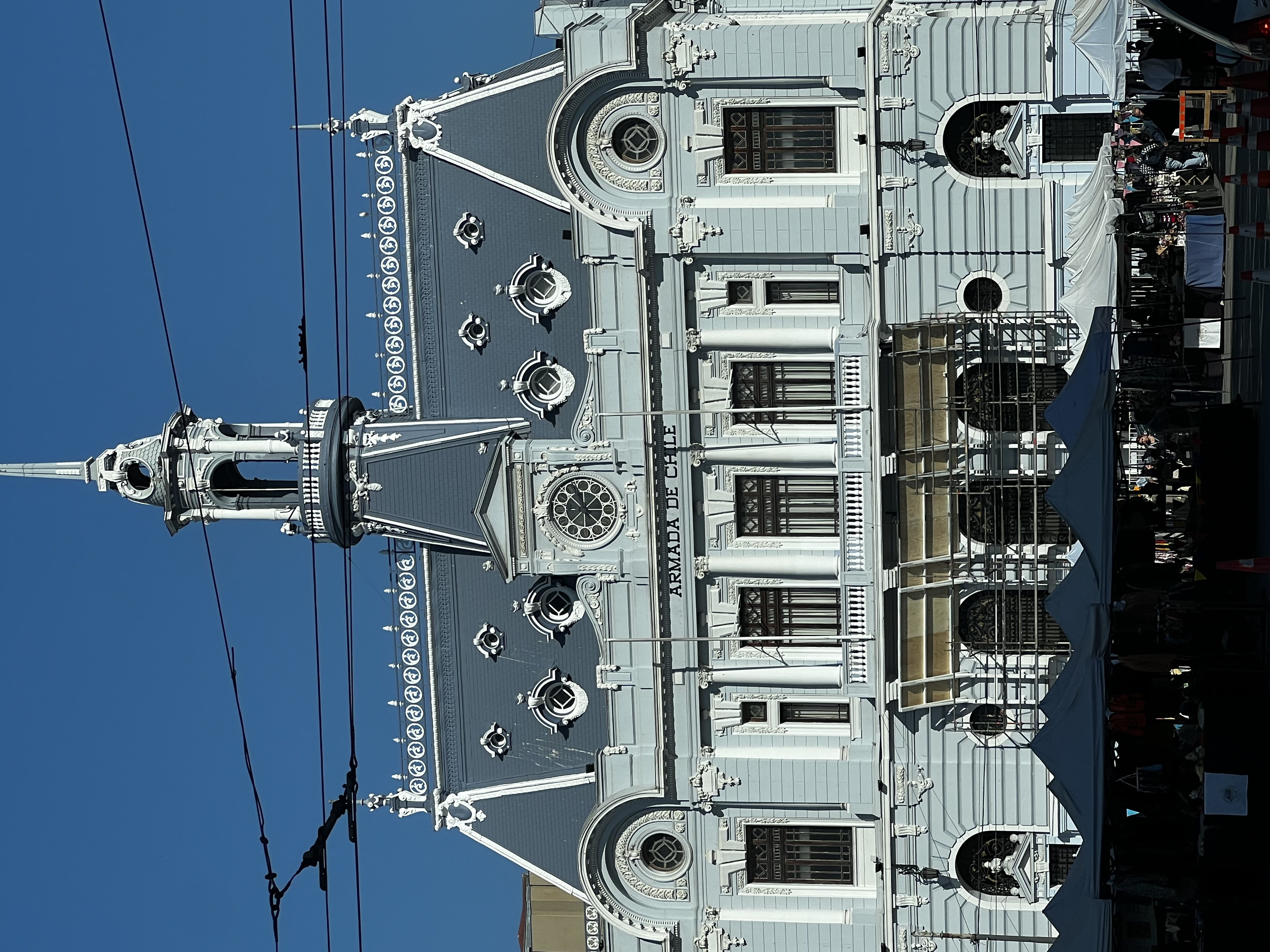 We found a square and a tourist market in front of the building for the Chilean Navy near the port.